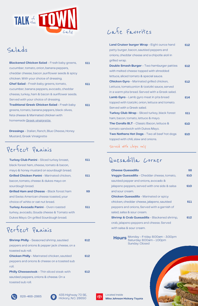 Whether you're grabbing a bite while waiting for car service or planning a special occasion, Talk of the Town Cafe delivers on every front. With rave reviews highlighting the exceptional skill of Chef Hope, this local gem is sure to be a talking point in Hickory!